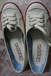 I chanced upon Kappa shoes whilst JoAnne was shopping for a new swimsuit, in the sports department in Takashimaya. Few designs of Kappa canvas shoes were on sale. The cutesy design and discounted price caught my eyes! Keke! Thus, I ended up bringing a pair home, telling myself I could wear it on my upcoming holiday. Hmmm.. always full of excuses to shop!